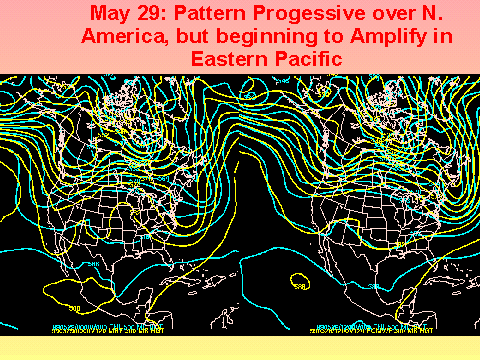 May 29: Pattern Progessive over N. America, but beginning to Amplify in Eastern Pacific